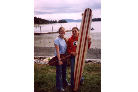 Laura and Melissa proudly bear their arms. And boards.
