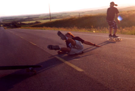 Chris demonstrates his effective new sliding technique. Graceful, to say the least.