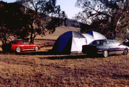 Only an Aussie would take his Nissan Skyline (red) Kangaroo hunting.