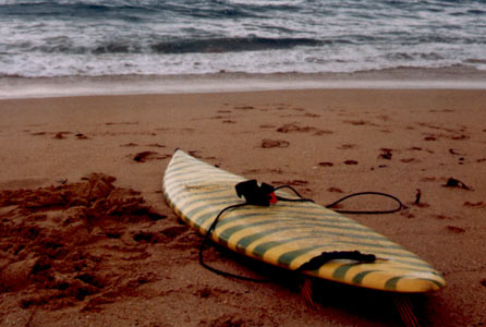 Chris's surfboard sits alone on Wombarra Beach, Wollongong. Someday, it will be there again...