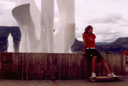 Sarah chills out by the sails statue, downtown Kelowna.
